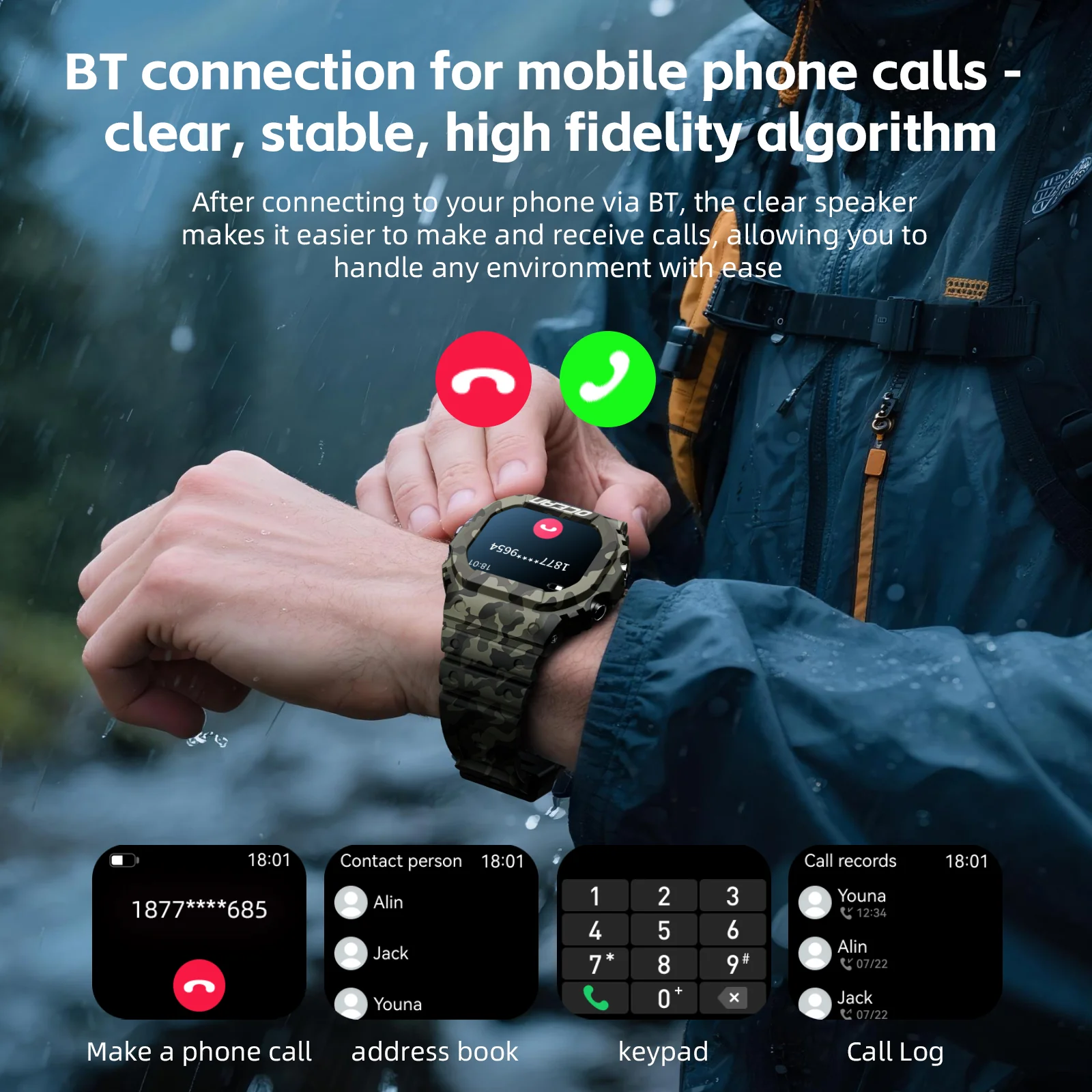 LOKMAT Ocean Smart Watch Outdoor Rugged Watch Multi-Sport Mode BT Calls Message Push Heart Rate Fitness Tracker Smartwatches